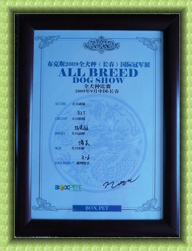 哈尔滨紫盈博美犬舍,白博美雪球的儿子小白龙参加了2009年9月13日的布克斯国际冠军展一路过关斩将夺得了全场冠军。为紫盈博美犬舍增添了荣誉,也夺得了犬舍的最好成绩,也是白色博美犬的最好战绩。